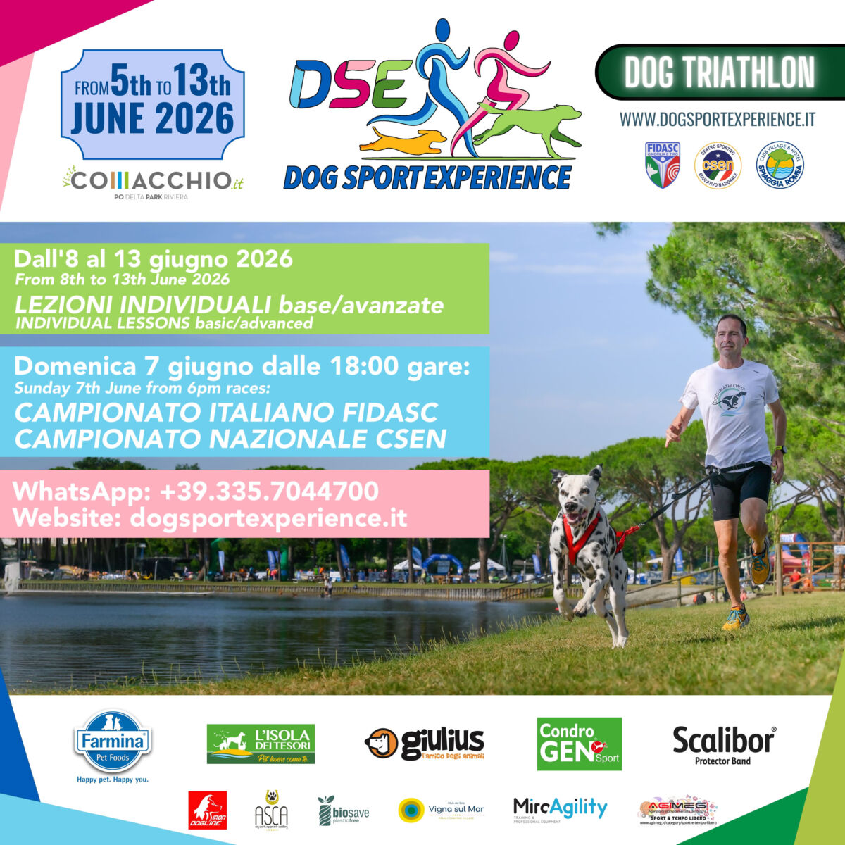 Dog Triathlon vi dà appuntamento all’Hotel Club Spiaggia Romea Village&Residence da domenica 8 a sabato 14 giugno 2025 per il 5° Dog Sport Experience, la prima settimana europea dedicata a qualsiasi sport con il cane, a cura di CSEN e FIDASC.